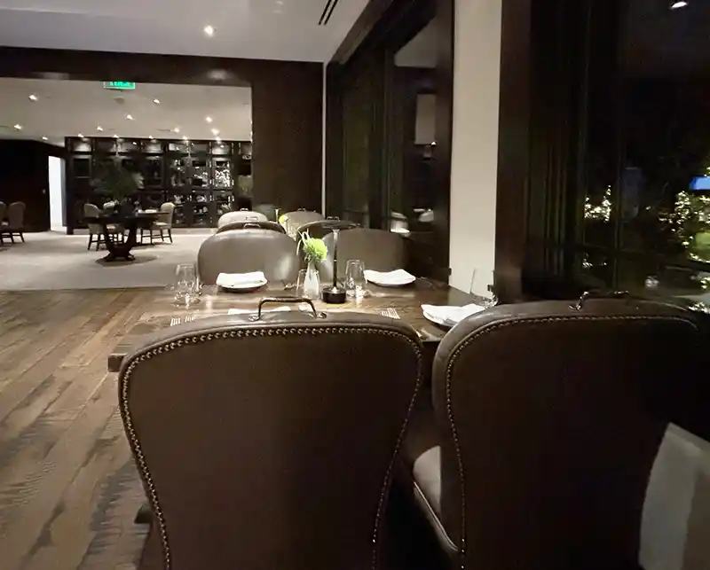 A decoração do restaurante segue o tom clássico do hotel, garantindo sofisticação e aconchego.