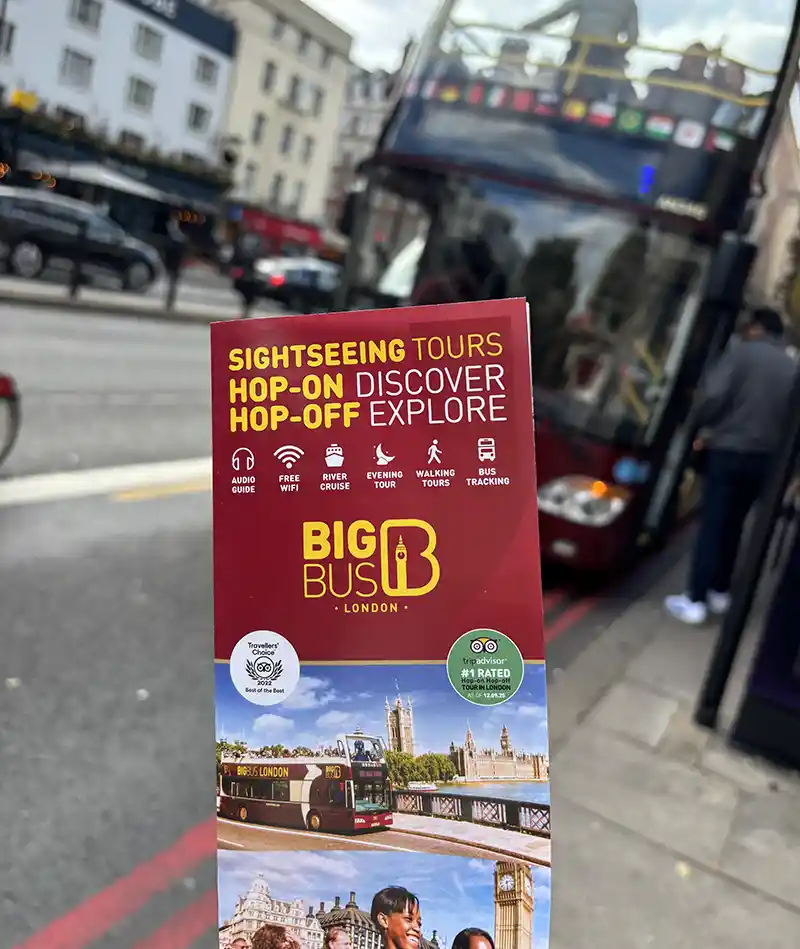 - Destaque: O ônibus conta com áudio-guia em português, o que enriquece o passeio enquanto você passa por ícones como o Palácio de Buckingham, Big Ben, Oxford St. e a famosa loja Harrods.